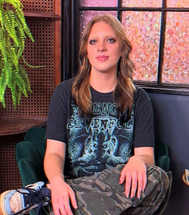 ![A woman with green hair and tattoos standing in a colorful room with a mirror and rainbow wall art, leaning on a pink chair.]()  ✨️ Lindsey ✨️INDEPENDANT ARTIST