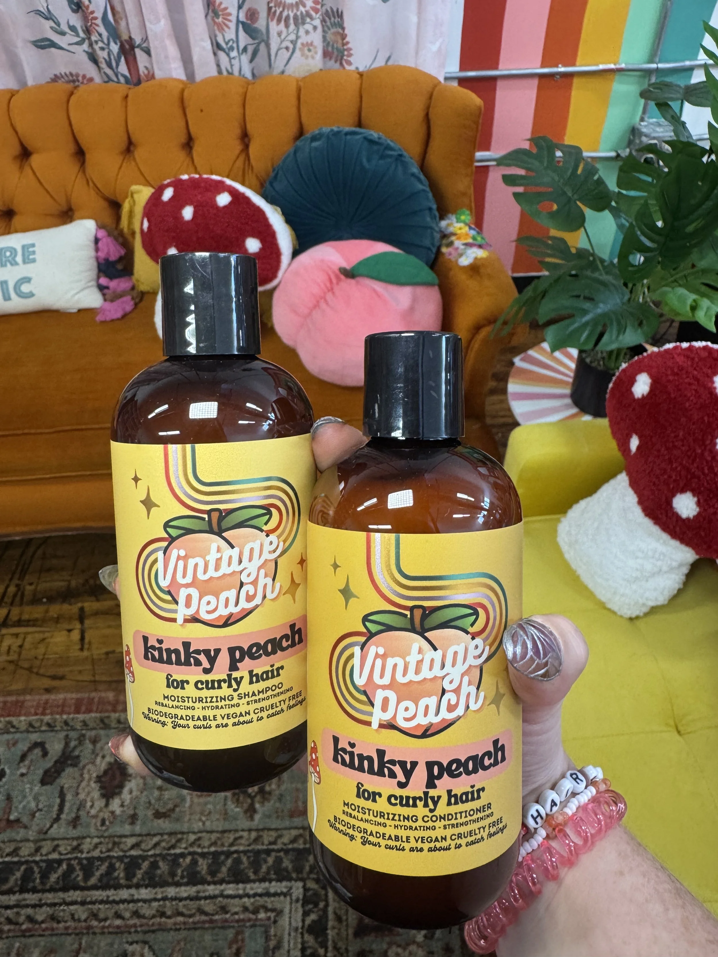Kinky Peach is a rich, curl-loving cleanse designed to gently detox and feed your natural texture exactly what it craves. This luscious lather defines, hydrates, and revives every curl, coil, and kink — leaving hair soft, bouncy, and ready to misbehave.