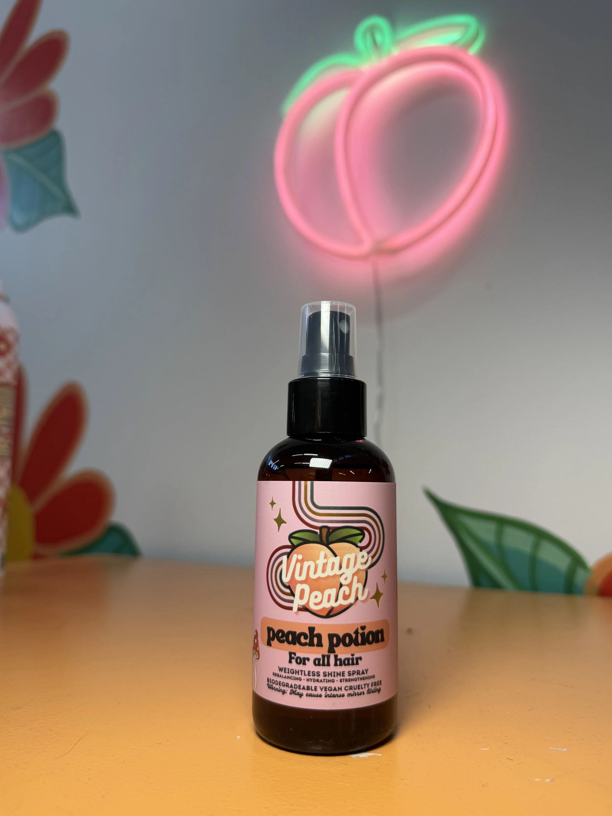 Peach Potion is your go-to glam mist, delivering a luminous, frizz-free finish that feels light as air but shines like a spotlight. Infused with natural emollients this ultra-fine mist hydrates, protects, and smooths without ever weighing you down.